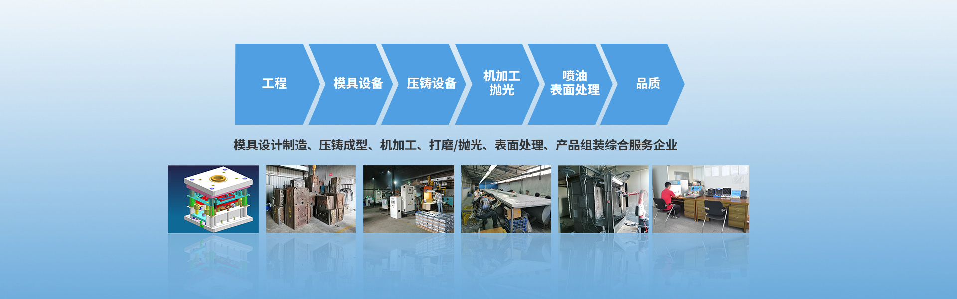 公司现有模具部、压铸部、机加工部、抛光打磨部,建厂以来,得益于生产方式、技能、管理的持续改进,我们的业务不断扩大,取得了平稳的发展。